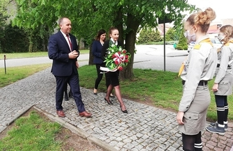 Władze samorządowe złożyły kwiaty pod pomnikiem przypominającym pamięć tych, którzy 25.05.1920 roku doprowadzili do powrotu Wijewa, Potrzebowa i Radomyśla do macierzy.