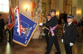 Uroczystość rozpoczęła się Mszą Św., którą odprawili ks. Łukasz Grys i Kapelan strażaków powiatu wolsztyńskiego O. Tadeusz Kal. Poświęcenia nowego sztandar dla OSP Wolsztyn dokonał O. Tadeusz Kal.