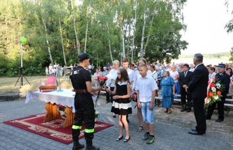 Następnie wszyscy udali się na miejsce kaźni, gdzie odmówiono modlitwę za tragicznie zmarłych a ksiądz kanonik poświęcił nowy krzyż ustawiony przed szubienicą.