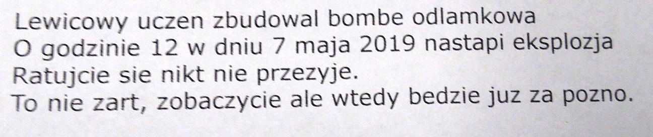 Od godzin porannych leszczyńskie placowki oświatowe otrzymują informację o podłożonych ładunkach wybuchowych.
