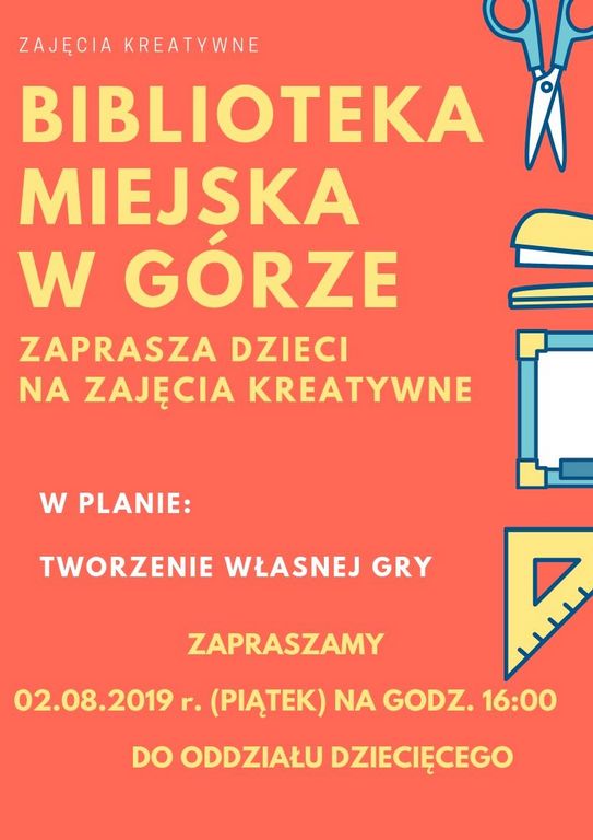 Biblioteka Miejska w Górze zaprasza na zajęcia kreatywne, które odbędą się 2 sierpnia. Organizatorzy planują tworzenie własnych gier.