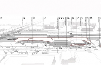 Cały koncept nowego węzła komunikacyjnego opiera się na bardzo silnym kontraście i kontekście: istniejącego modernistycznego dworca, nawiązań do historii w postaci parowozów i czynnej parowozowni oraz nowoczesną, ekspresyjną linią zadaszeń i nowoczesnych elementów małej architektury.