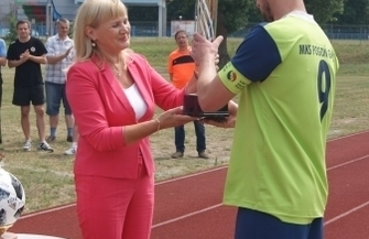 Na niedzielnym meczu pojawiła się Irena Krzyszkiewicz, która gratulowała zawodnikom sukcesu, na ręce kapitana drużyny MKS Pogoń Góra wręczyła Puchar Burmistrza Góry za awans do ligi okręgowej. Za udzielane wsparcie i bardzo dobrą współpracę kapitan drużyny w imieniu całego zespołu wręczył Irenie Krzyszkiewicz statuetkę z piłką wraz z podpisami zawodników Pogoni. Również przedstawiciele Zarządu Klubu wręczyli bukiet czerwonych róż w podziękowaniu za udzielone wsparcie.