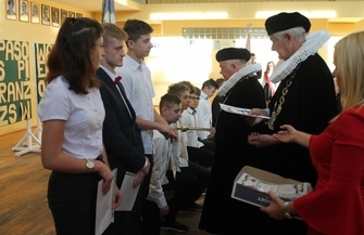 Po ślubowaniu odbyło się uroczyste pasowanie wyróżnionych uczniów przez przedstawicieli Cechu Rzemiosł Różnych: