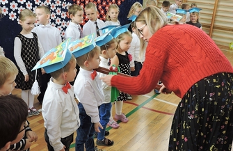 Za występy dzieci zebrały gromkie brawa i pochwały. Na pamiątkę pasowania przedszkolaki otrzymały dyplomy i upominki ufundowane przez Radę Rodziców. Rodzice także nie zapomnieli o nagrodzeniu swych pociech. Dzieci szczodrze zostały obdarowane prezentami, które zakupili rodzice. Pyszne, słodkie wypieki domowej roboty były miłą niespodzianką na koniec uroczystości. Dziękujemy za liczny udział rodziców i nieocenioną pomoc w zorganizowaniu tego przedszkolnego święta.