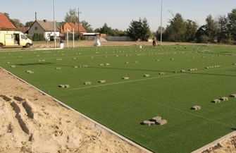 Boisko o wymiarach 30x44 m, będzie posiadać sztuczną nawierzchnię trawiastą, oraz będzie przystosowane do gry w: piłkę nożną, piłkę ręczną, koszykówkę, siatkówkę.