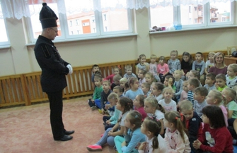 Górnik ubrany był w galowy mundur i czako, na którym  lśnił czarny pióropusz z kogucich piór. Gość zaprezentował dzieciom film o  kopalni,  opowiedział także o pracy pod ziemią. Przedszkolaki w podziękowaniu złożyły na ręce gościa kwiaty oraz życzenia z okazji jego święta. Na zakończenie spotkania  dzieci zostały obdarowane przez gościa cukierkami.