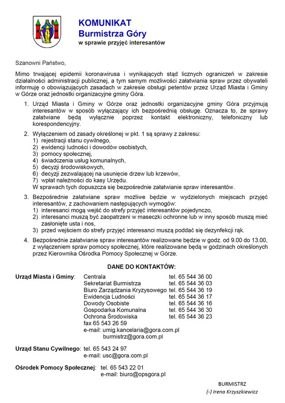 Warto zapoznać się z całym komunikatem burmistrz Góry. Poniżej pełna treść.