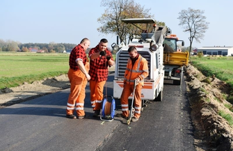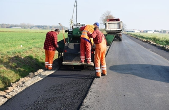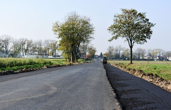 Po zrobieniu podbudowy drogi oraz jej poszerzeniu po obu stronach do szerokości 6-6,20 m, aktualnie wykonywane jest frezowanie części starej nawierzchni. Układana jest również pierwsza warstwa asfaltu na nowej konstrukcji.