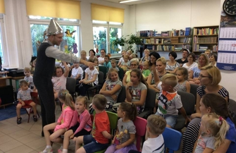 W piątek – 6 lipca – dzieci obejrzały spektakl „Czarnoksiężnik z Krainy Oz”. Przedstawienie prezentowane było w trzech lokalizacjach: w Bibliotece Miejskiej w Górze, w Filii Bibliotecznej w Czerninie oraz w Filii Bibliotecznej w Chróścinie.