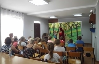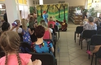 W piątek – 3 sierpnia – dzieci obejrzały spektakl „Opowieści z teczki profesora Książeczki”. Przedstawienie prezentowane było w trzech lokalizacjach: w Bibliotece Miejskiej w Górze, w Filii Bibliotecznej w Czerninie oraz w Filii Bibliotecznej w Chróścinie.