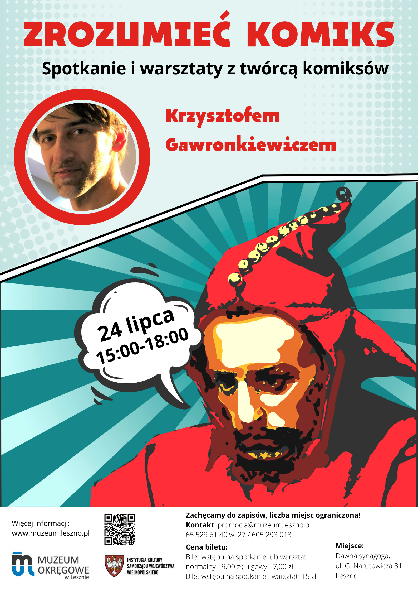 Jeśli lubicie czytać komiksy i je kolekcjonować i zastanawiacie się jak przebiega proces ich tworzenia, mamy dla Was coś wyjątkowego. Dnia 24 lipca, o godzinie 15.00, w murach Muzeum Okręgowego w Lesznie (dawna synagoga, ul. G. Narutowicza 31), odbędzie się spotkanie z Krzysztofem Gawronkiewiczem.