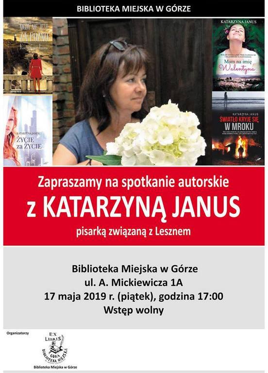 Biblioteka Miejska w Górze zaprasza na spotkanie autorskie z Katarzyną Janus, które odbędzie się 17 maja. Mieszkańcy i fani książek, powinni w tym dniu przybyć do siedziby biblioteki o godz. 17:00.