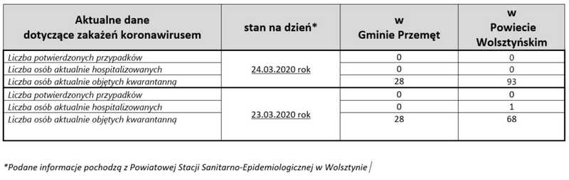 Gmina Przemęt opublikowała aktualne dane dotyczące zakażeń koronawirusem. W gminie oraz w powiecie nie ma potwierdzonych przypadków. Jednak są osoby objęte kwarantanną oraz hospitalizowane.