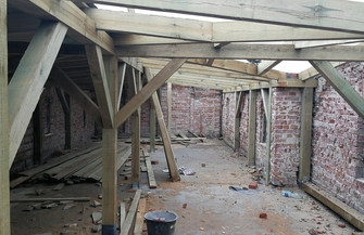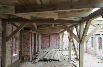 Obecnie wykonywane są prace wewnątrz budynku byłego Internatu oraz układane jest nowe pokrycie dachu budynku gospodarczego.