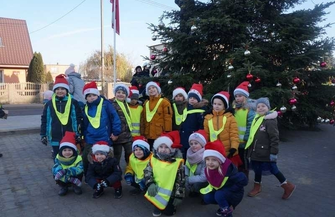 W ubieraniu choinki pomogli też: p.o. dyrektora przedszkola Małgorzata Trąbała, strażacy z OSP Lipno oraz opiekunowie z przedszkola. Drzewko szybko nabrała kolorów od ozdób.