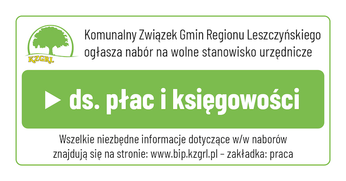 Komunalny Związek Gmin Regionu Leszczyńskiego ogłasza nabór na wolne stanowisko Urzędnicze ds. płac i księgowości