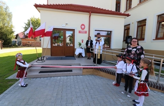 Wyremontowany przedszkolny budynek oficjalnie poświęcono. Goście chętnie oglądali nowe wnętrza i pomieszczenia Domu Dziennego Pobytu Senior+. Ku radości dzieci, na zewnątrz czekało wiele atrakcji - policjanci i strażacy, dmuchańce oraz gry i zabawy.