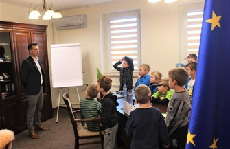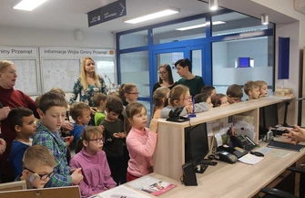 Gości powitał sekretarz gminy Grzegorz Aryż. Pokazał im salę sesyjną. Następnie uczniowie zwiedzili gabinety wójta Janusza Frąckowiaka i zastępy Waldemara Kalitki. Mogli zasiąść w ich fotelach.
