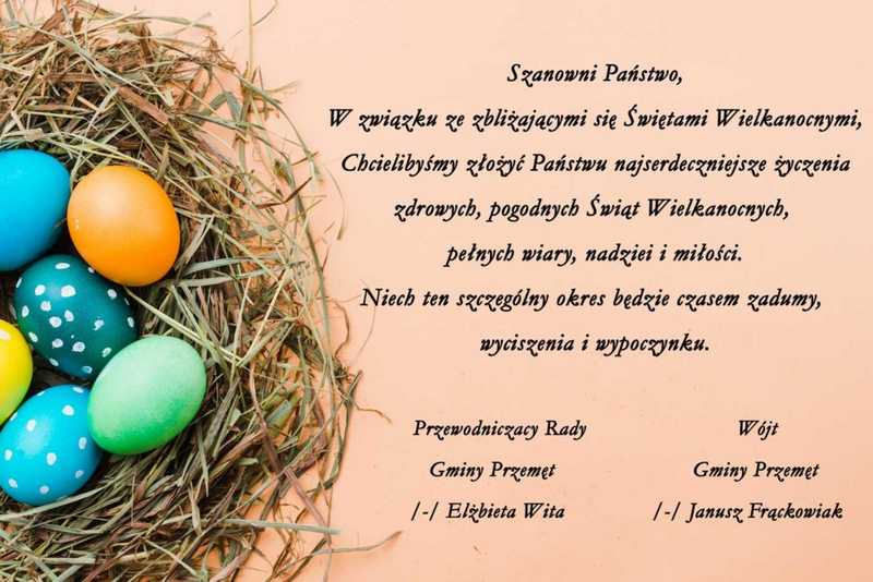 Wójt Janusz Frąckowiak oraz Przewodnicząca Rady Gminy Elżbieta Wita, złożyli mieszkańcom gminy życzenia wielkanocne. Aby nie brakowało wiary, nadziei i miłości.